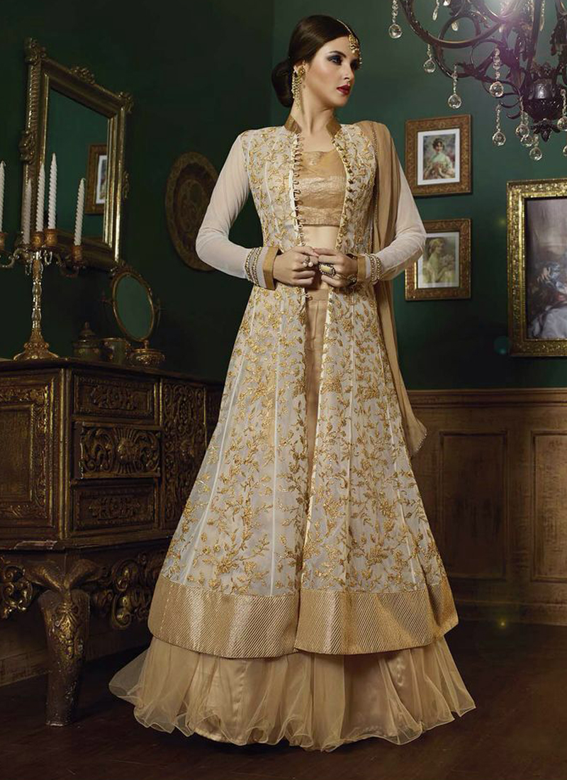 Cream And Gold Lehenga / Buy online womens wear exclusive sarees, exclusive salwar kameez, designer lehengas, exclusive kurtis in india.